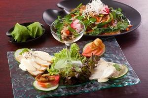 ・前菜(胸肉のカルパッチョ、トマトのオアシス)